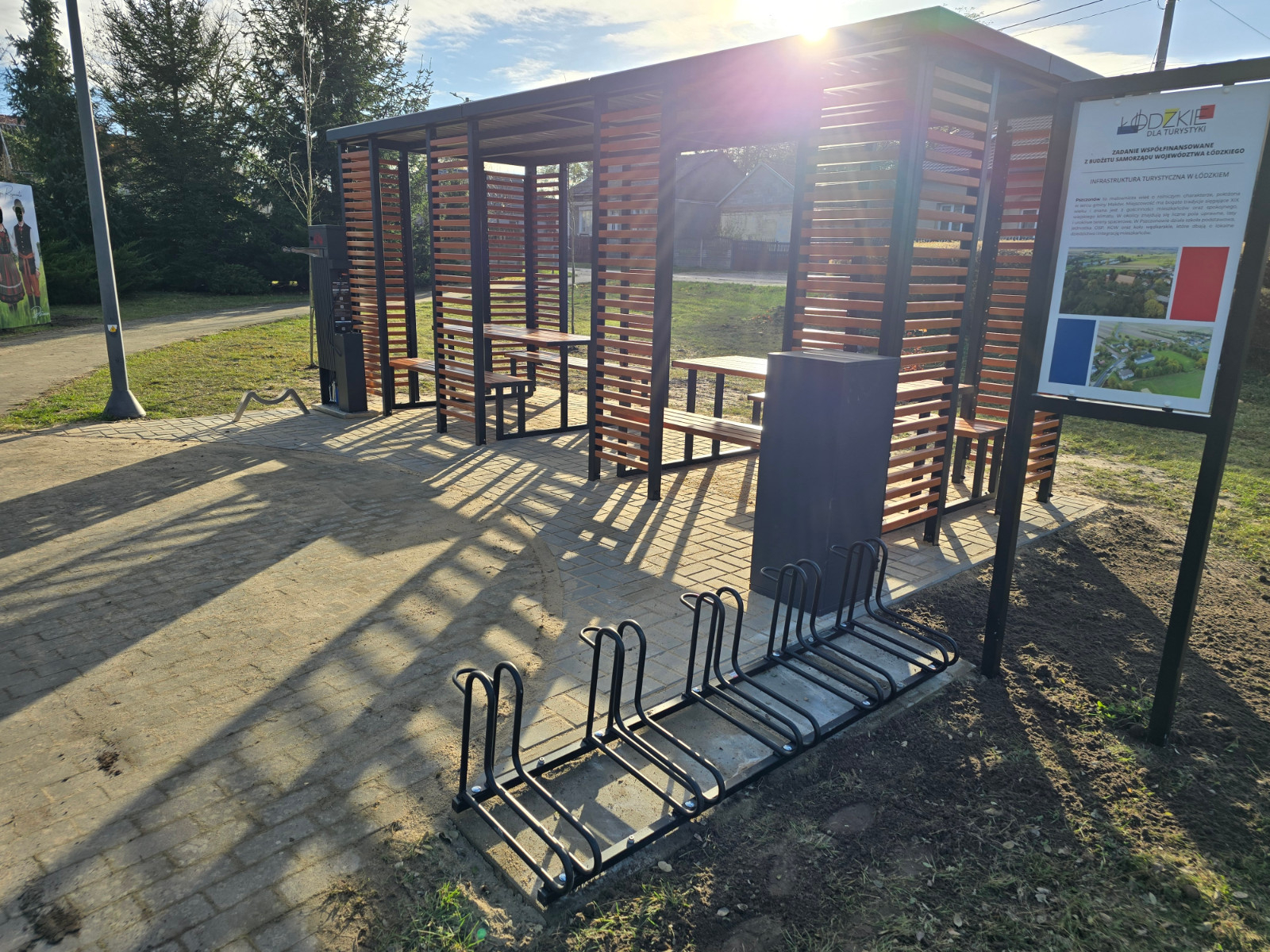 Nowo powstałe miejsce postojowe stanowi doskonały punkt odpoczynku dla rowerzystów korzystających z tras przebiegających przez teren gminy Maków. Inwestycja wpisuje się w działania gminy na rzecz rozwoju infrastruktury turystycznej i promocji aktywnego stylu życia. Zadanie zostało współfinansowane z budżetu Samorządu Województwa Łódzkiego w ramach programu „Infrastruktura Turystyczna w Łódzkiem”. Dzięki tej inicjatywie Gmina Maków zyskała kolejne przyjazne i funkcjonalne miejsce, które będzie służyć mieszkańcom oraz odwiedzającym przez wiele lat.