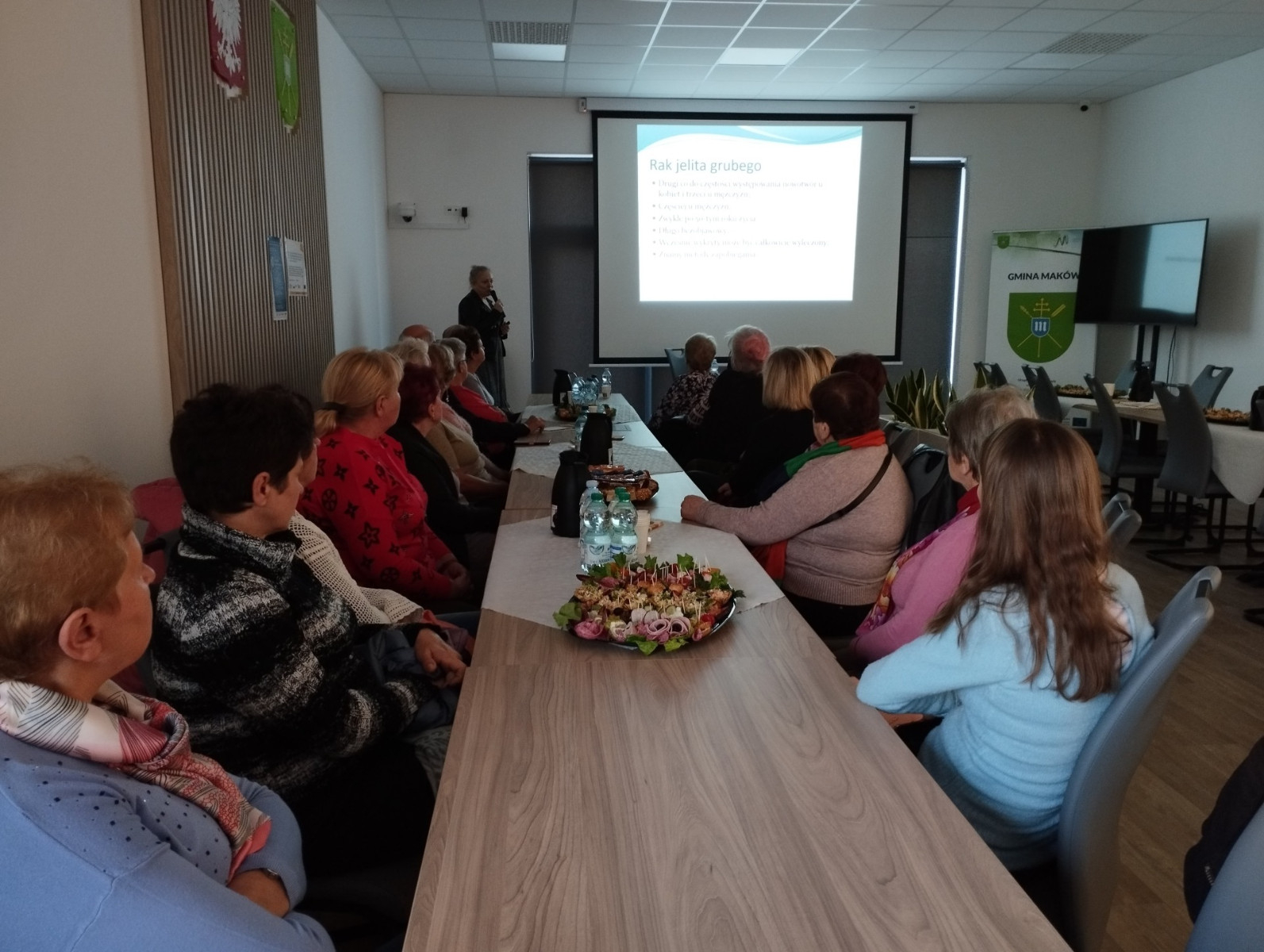 W dniu dniu 23 października 2022 roku, w sali konferencyjnej Urzędu Gminy w Makowie, odbyło się spotkanie edukacyjne na temat profilaktyki dot. chorób jelita grubego. Podczas spotkania wszyscy obecni mogli bezpłatnie skorzystać z konsultacji ze specjalistami ( gastrolog, dietetyk), otrzymali drobne upominki oraz zostali poczęstowani pysznymi przekąskami.