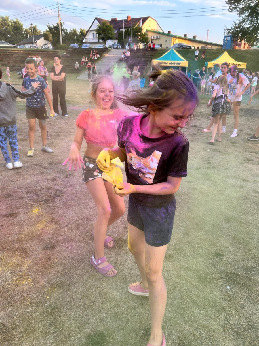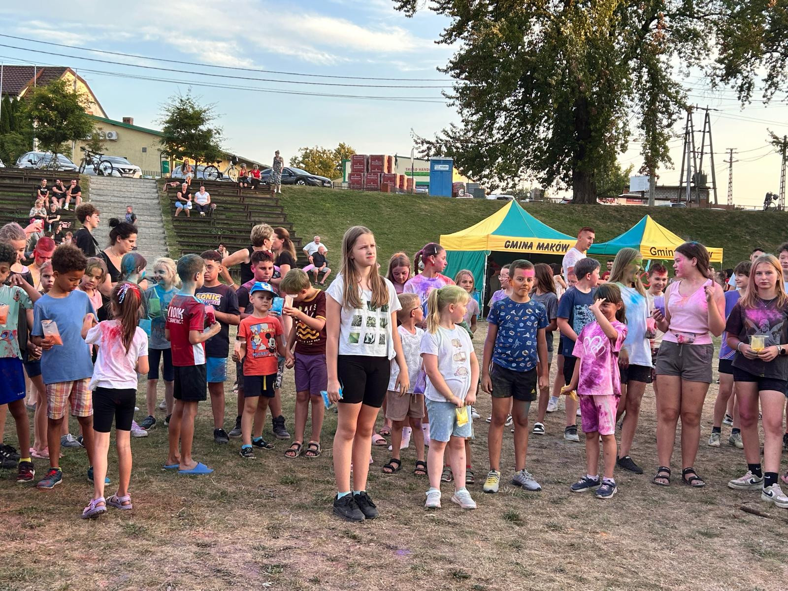 29 sierpnia Maków ożył dzięki Festiwalowi Kolorów. Uczestnicy, zarówno dorośli, jak i dzieci, wspólnie obsypywali się kolorowym proszkiem, tworząc niezapomniane widowisko i radosną atmosferę. Impreza była doskonałą okazją do zabawy, integracji i spędzenia czasu na świeżym powietrzu. Dziękujemy wszystkim za udział w tym barwnym święcie!