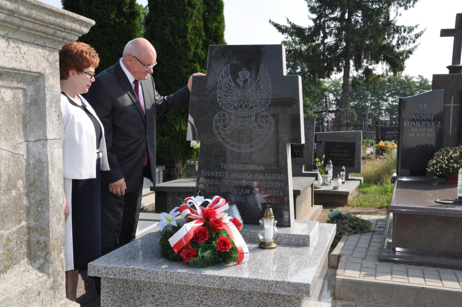 W rocznicę wybuchu II wojny światowej, Wójt Gminy Jerzy Stankiewicz i Sekretarz Gminy Maria Krawczyk oraz Przewodnicząca Rady Gminy Maria Piechut uczcili pamięć poległych podczas wojny żołnierzy i mieszkańców, składając wiązanki kwiatów i zapalając znicze na ich grobach.