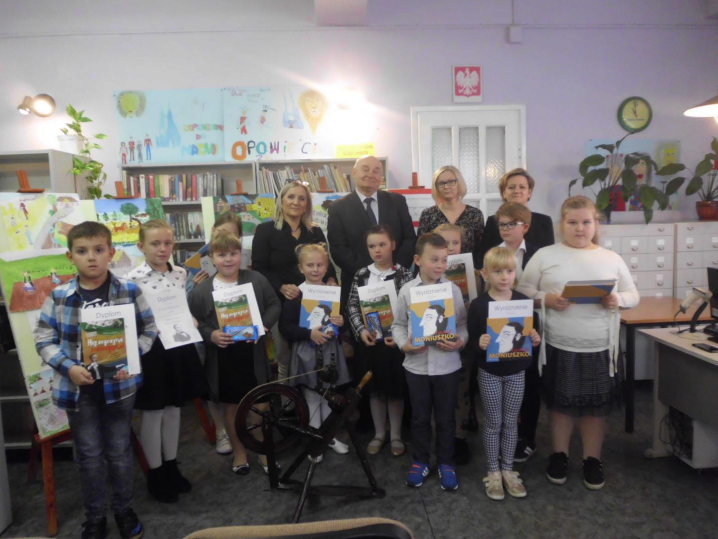 Dyplomy oraz nagrody powędrowały do uczestników Gminnego Konkursu Plastycznego pt. „Inspiracje muzyczne Stasia Moniuszki”. Konkurs został zorganizowany w związku z 200 rocznicą urodzin Stanisława Moniuszki - wybitnego artysty, kompozytora, który swoje życie i twórczość poświęcił krzewieniu polskiej muzyki. Adresowany był do uczniów klas I-III szkół podstawowych z terenu Gminy Maków. Zadaniem uczestników było wykonanie ilustracji do tekstów zaczerpniętych z książki Wandy Chotomskiej pt.,, Muzyka Pana Moniuszki” Na konkurs złożono 37 prac. Komisja konkursowa dokonała wnikliwej oceny biorąc pod uwagę zgodność z tematem, samodzielność, a przede wszystkim walory artystyczne oraz estetyczne.