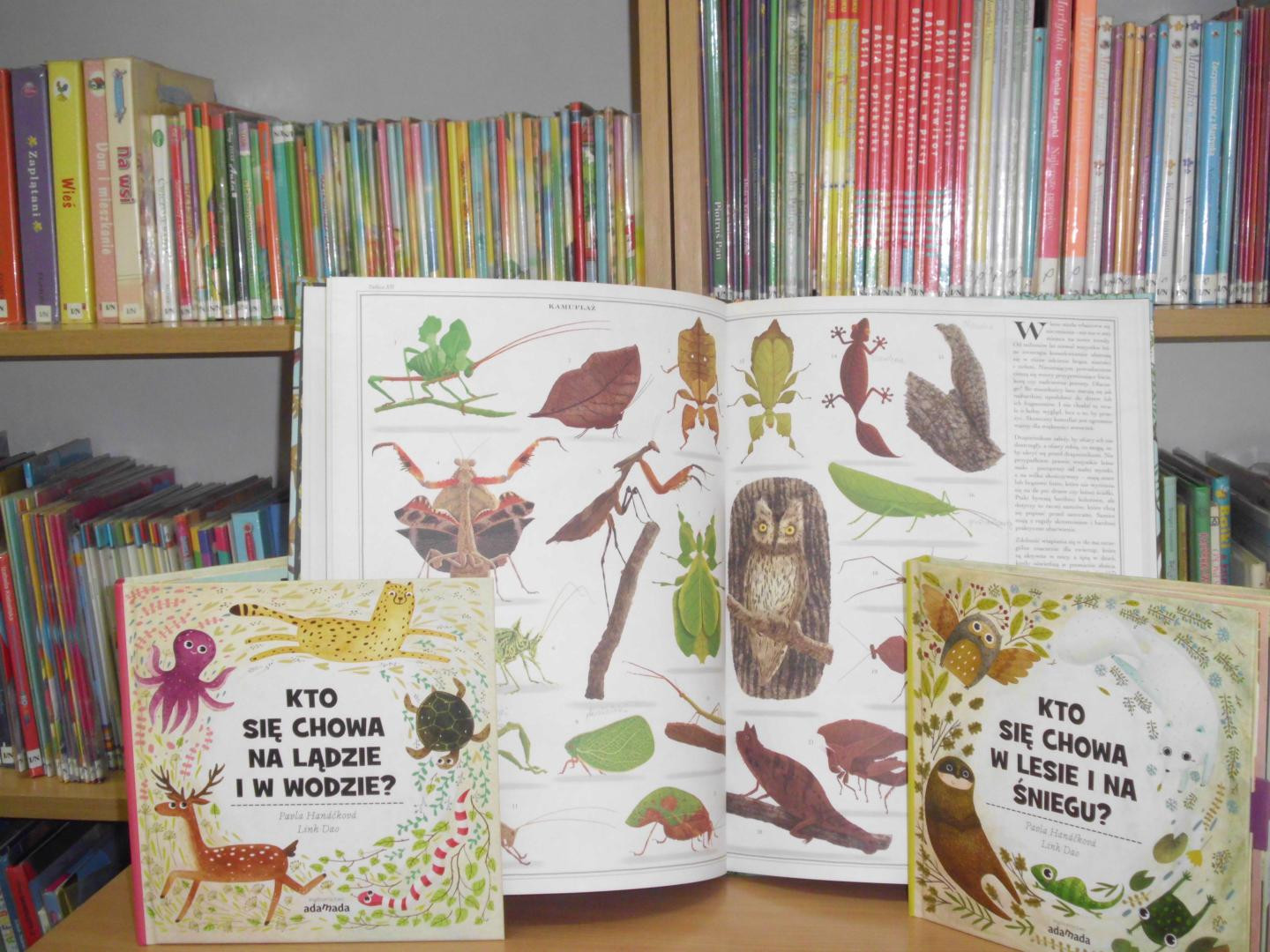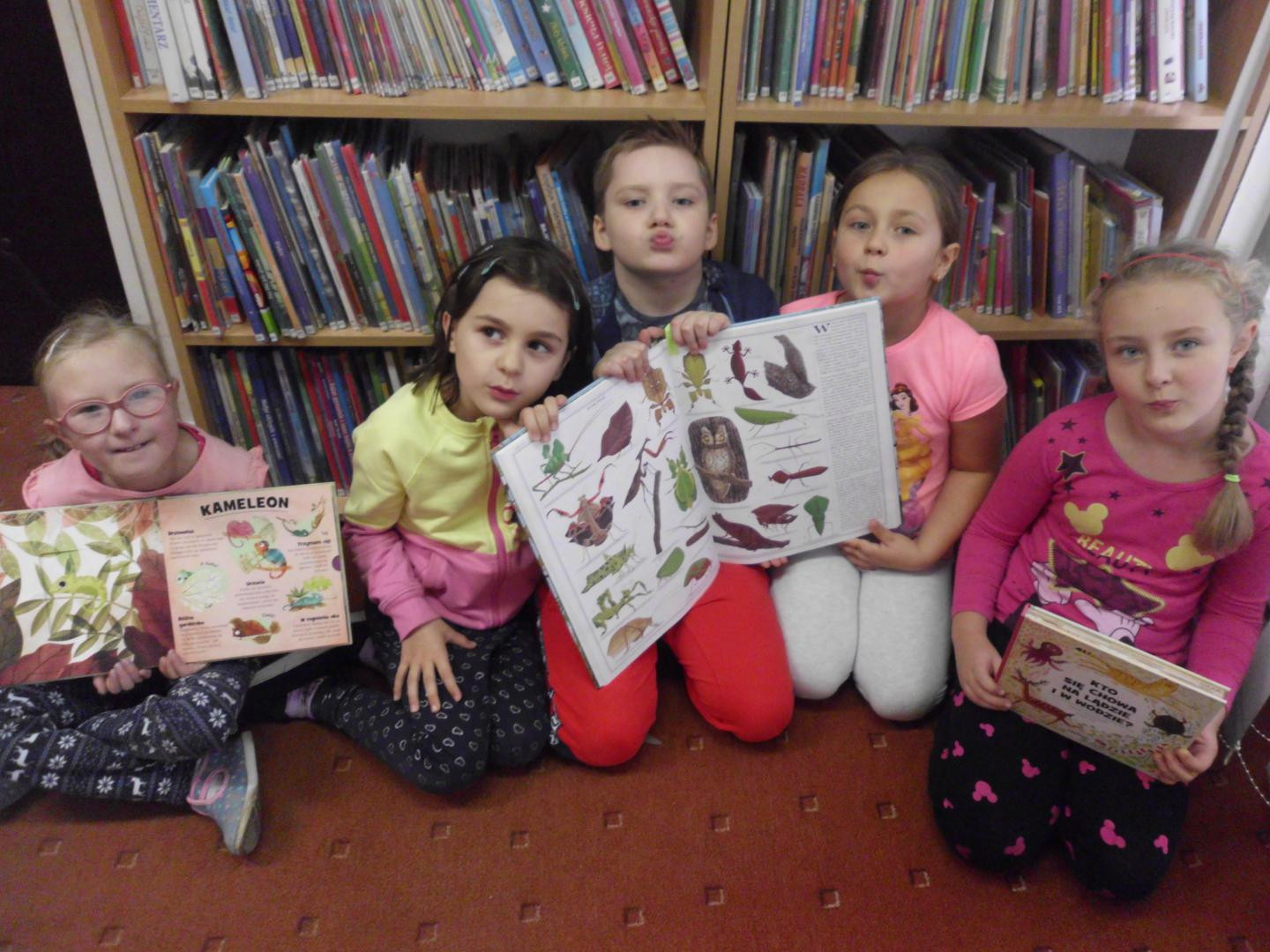 Młodzi czytelnicy z Filii Bibliotecznej w Pszczonowie po raz kolejny uczestniczyli w zajęciach zorganizowanych w ramach projektu ,, Para buch książka w ruch! Tym razem wykazali się sporą wiedzą na temat życia różnych gatunków zwierząt. Największe zainteresowanie wzbudził jednak - kamuflaż zwierząt. Mimo, że uczestnicy zajęć potrafili wspaniale wypowiadać się na temat poszczególnych gatunków, to jednak udało się ich czymś zaskoczyć. Ciekawostek dotyczących zwierzaków jest bardzo dużo. Dzieci zgodnie stwierdziły, iż zwierzęta podobnie jak one lubią bawić się w chowanego. Niektóre z nich mają taki kolor, że wspaniale wtapiają się w otoczenie i są mało widoczne. Inne potrafią udawać las bambusowy, kamień lub liść. Wiele jest również na świecie owadów, które swoim wyglądem do złudzenia przypominają gałązkę drzewa albo kwiat orchidei. Zwierzaki to niewątpliwie wielcy mistrzowie kamuflażu. Młodych czytelników zachęcamy do lektury książeczek autorstwa Pavli Hanackovej pt. „Kto się chowa na lądzie i w wodzie ?” oraz „Kto się chowa w lesie i na śniegu ?'