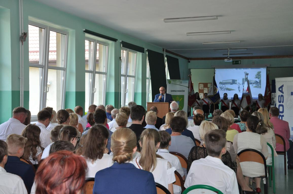 Uroczystość miała podniosły charakter i uświetniona została obecnością szanownych gości: Mieczysław Jurczak – Prezes Zarządu Firmy ROSA-BUD, Jan Wach – Prezes Zarządu Firmy ELIN, Andrzej Szewczyk – Wiceprezes Firmy EKOENERGIA, Dominik Dudek oraz Łukasz kędziora – projektanci budynku hali sportowej, Marcin Gul – kierownik kontraktu, Dariusz Kuleta – Przewodniczący Rady Gminy, Ks. Cyprian Lewandowski – Proboszcz Parafii w Pszczonowie, Ks. Andrzej Kłoszewski – Proboszcz parafii Stachlew, Ks. Wikariusz Grzegorz Krupa, Dyrektorzy Szkół z terenu gminy oraz Radni Gminy Maków. W uroczystości licznie uczestniczyła społeczność szkolna, rodzice oraz mieszkańcy gminy.