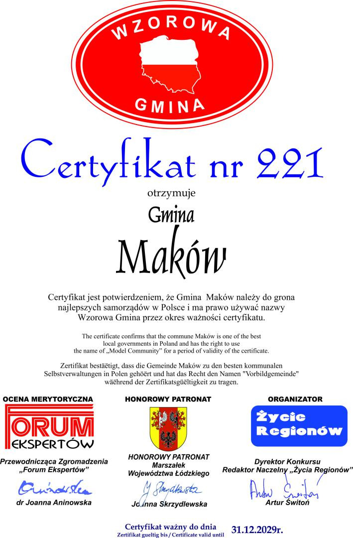 Prestiżowy certyfikat przyznany został na najbliższe 5 lat tytuł „Wzorowej Gminy” to nie tylko ogromne wyróżnienie, ale również zobowiązanie do dalszego dynamicznego rozwoju. To dowód na to, że Maków stanowi przykład nowoczesnego i skutecznie zarządzanego samorządu.