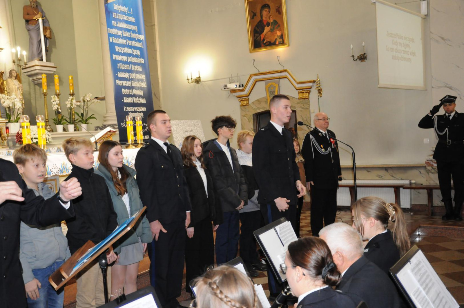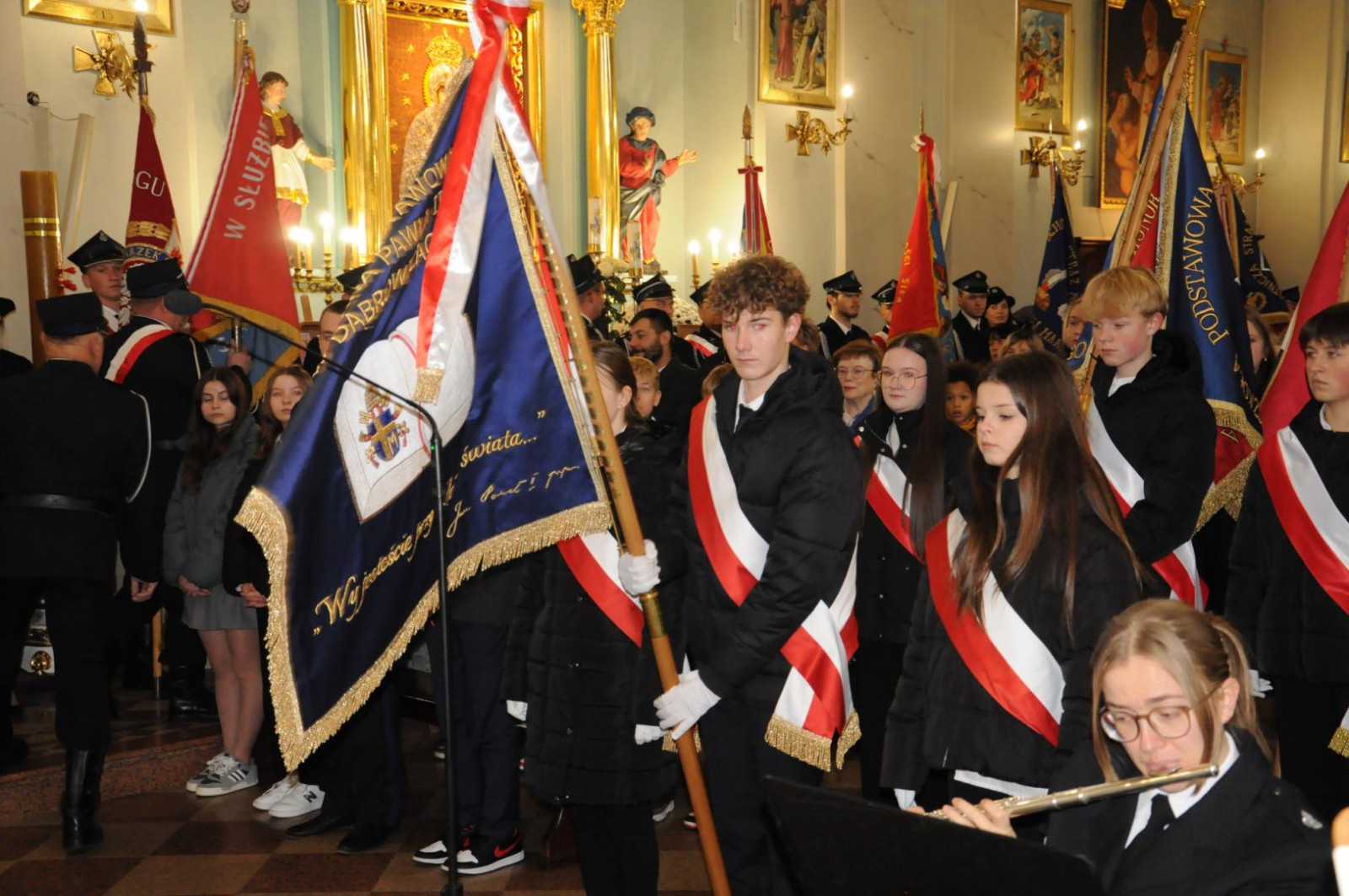 Tradycyjnie już, w dniu 11 listopada br. w naszej Gminie obchodziliśmy rocznicę odzyskania przez Polskę Niepodległości. Z tej okazji w makowskim kościele pw. Św. Wojciecha odprawiona została uroczysta Msza Św. w intencji Ojczyzny. We Mszy Św., którą celebrował wikariusz parafii ks. Adam Łukaszewicz, uczestniczyły władze Gminy Maków: Wójt Gminy Jerzy Stankiewicz, Przewodniczący Rady Gminy Patryk Magdziarz, Zastępca Wójta Emilia Smolarek, Sekretarz Gminy Maria Krawczyk, radni Rady Gminy, dyrektorzy i nauczyciele oraz poczty sztandarowe ze szkół, poczty sztandarowe jednostek ochotniczych straży pożarnych z terenu Gminy, a także liczna grupa naszych mieszkańców. Oprawę muzyczną uroczystości zapewniła makowska Orkiestra Dęta OSP pod dyrekcją dh Mariana Chmielewskiego.Uroczystość rozpoczęła się wspólnym odśpiewaniem Hymnu Polski, które poprowadziła grupa uczniów makowskich szkół. Po zakończeniu Mszy Św. odbył się okolicznościowy koncert pieśni patriotycznych w wykonaniu Orkiestry Dętej oraz solistów: Dominiki Żelazińskiej, Weroniki Więcek, Antoniego Wiśniewskiego i Jana Sabaja.