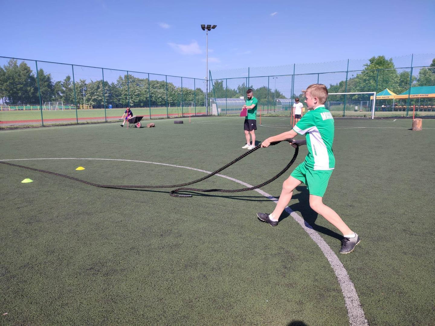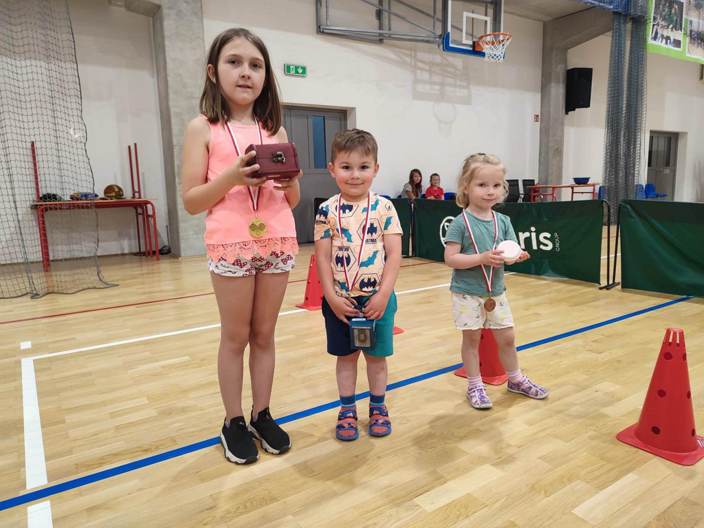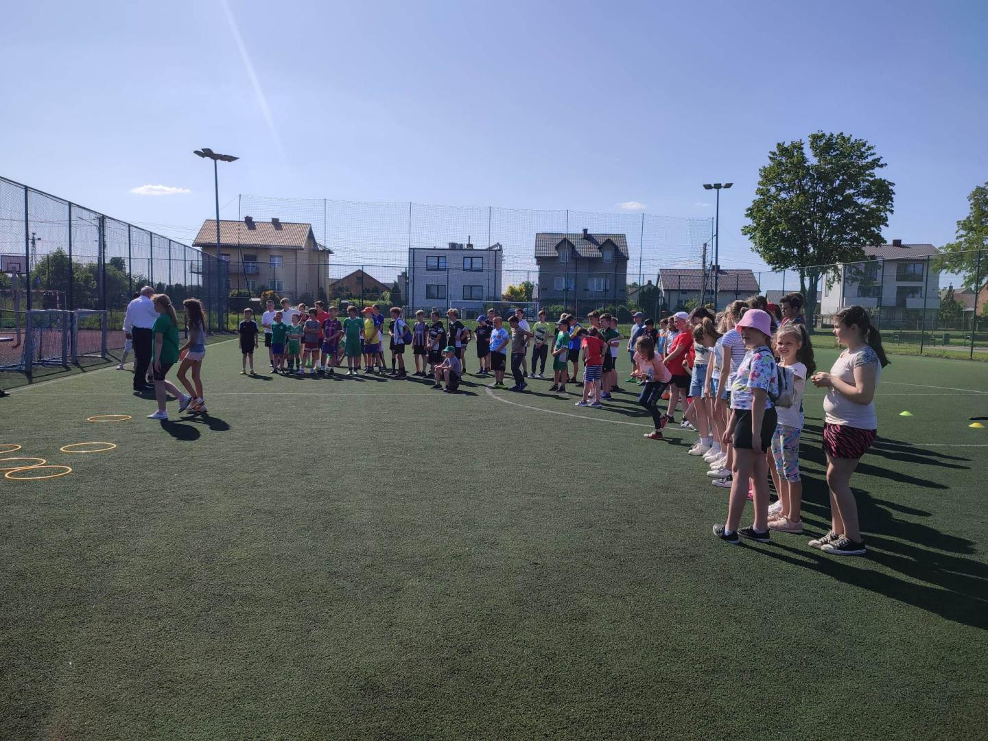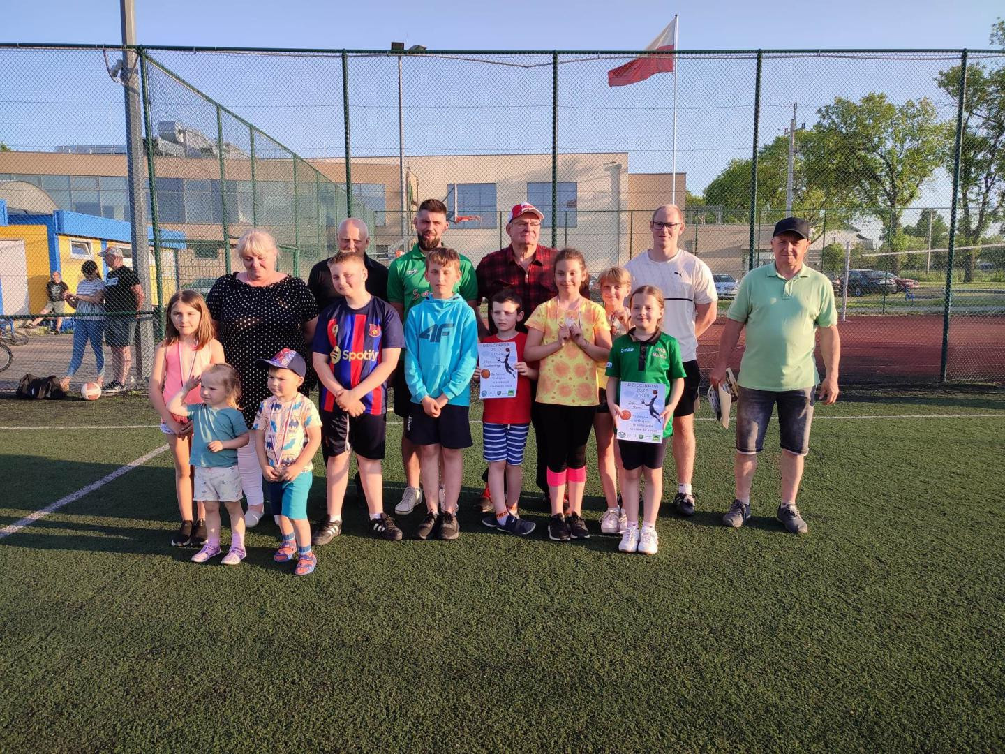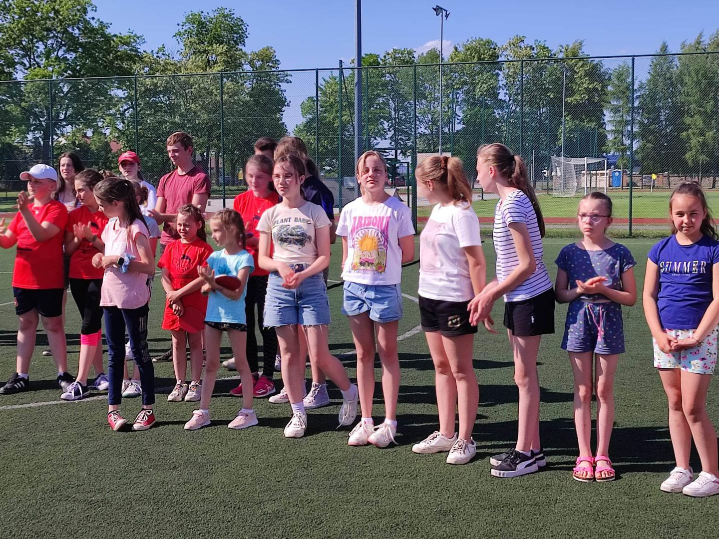 Na parkiecie hali sportowej, orliku oraz boisku trawiastym bawiło się z nami łącznie około 80 dzieci. Dla uczestników przygotowane były następujące konkurencje sportowo-rekreacyjne: spacer farmera , konkurs rzutów do kosza , zespołowe gierki , turniej piłki nożnej oraz turniej tenisa stołowego. Ponadto po zmaganiach sportowych lub miedzy konkursami dla dzieci czekał poczęstunek oraz zimne napoje.