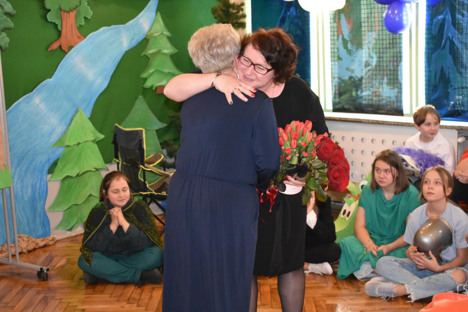 W krótkiej prezentacji uczniowie przypomnieli niektóre dokonania Pani dyrektor, zwrócili uwagę na jej troskę o bazę dydaktyczno – lokalową, dokonane remonty i modernizacje, ale przede wszystkim na codzienną pracę z uczniami. Przypomnieli jej zasługi dla powołania przy szkole 113 Drużyny Harcerskiej „Czarna 13”, aktywną działalność na rzecz środowiska lokalnego, wyjątkową współpracę z rodzicami. I choć w kilku słowach nie da się zamknąć dwudziestu lat ciężkiej pracy, dziękowali za wyrozumiałość, serdeczność, otwartość i odpowiedzialność.