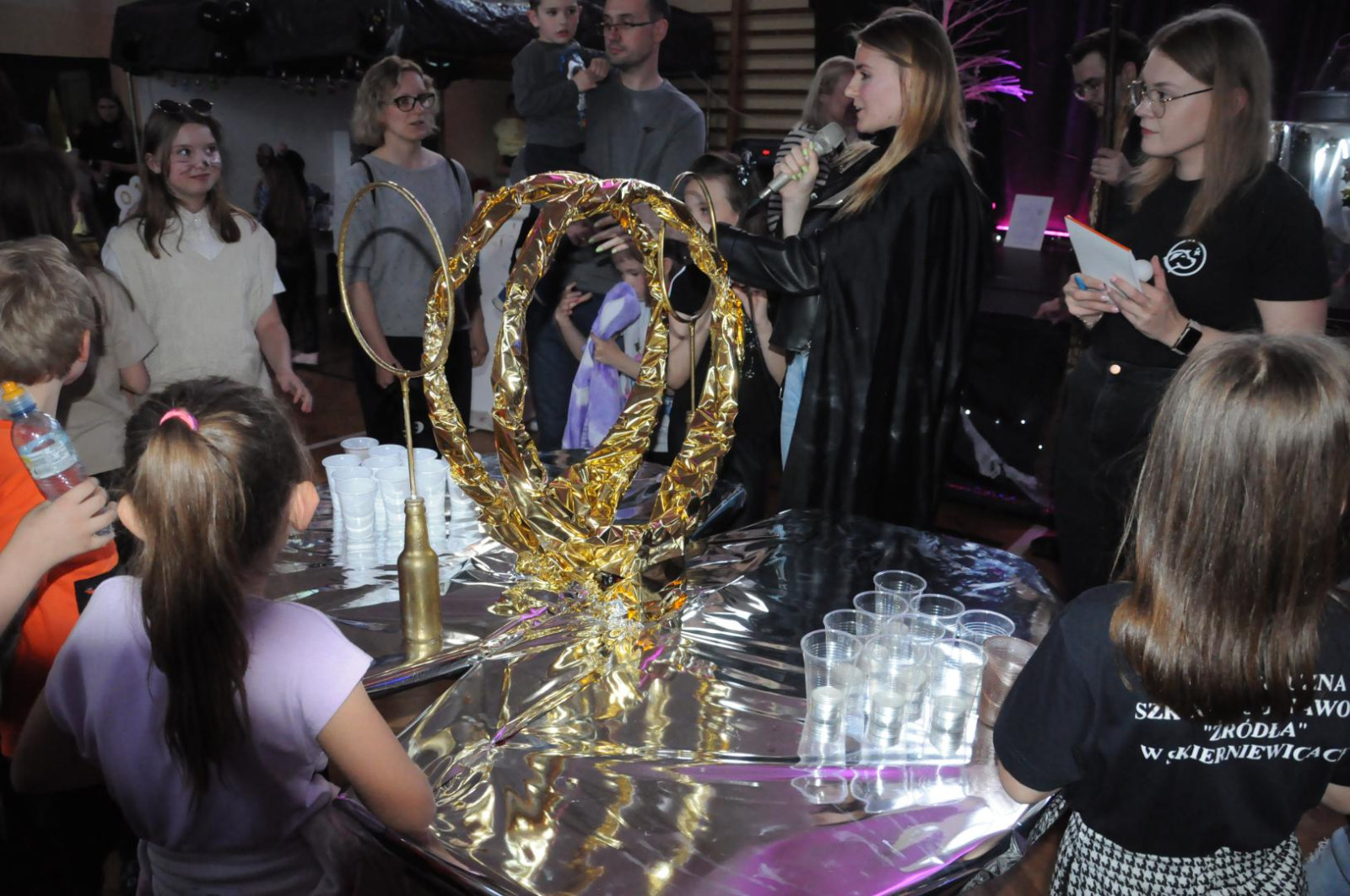 Motywem przewodnim zajęć była destylacja ropy naftowej. Prowadząca warsztaty Pani Agnieszka przybliżyła dzieciom sylwetką Ignacego Łukasiewicza oraz jego dokonania naukowe w szczególności wydestylowania nafty i konstrukcję pierwszej lampy naftowej na świecie. Każdy z uczestników warsztatów dysponował osobistym zestawem doświadczalnym i zbudował w probówce, czyli odpowiedniku kolumny rektyfikacyjnej kolorową wieżę gęstości imitującą poszczególne frakcje ropy naftowej. Warsztaty chemiczne cieszyły się wśród dzieci dużym zainteresowaniem.