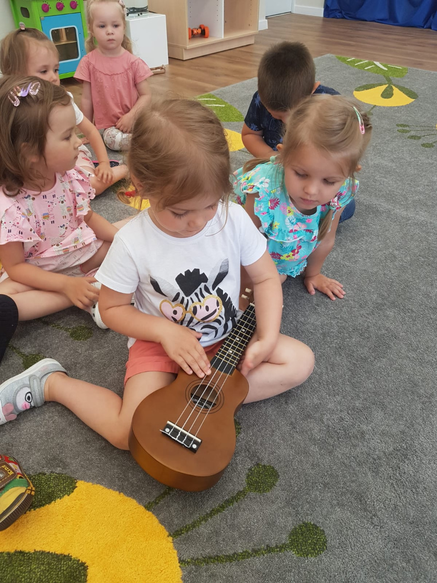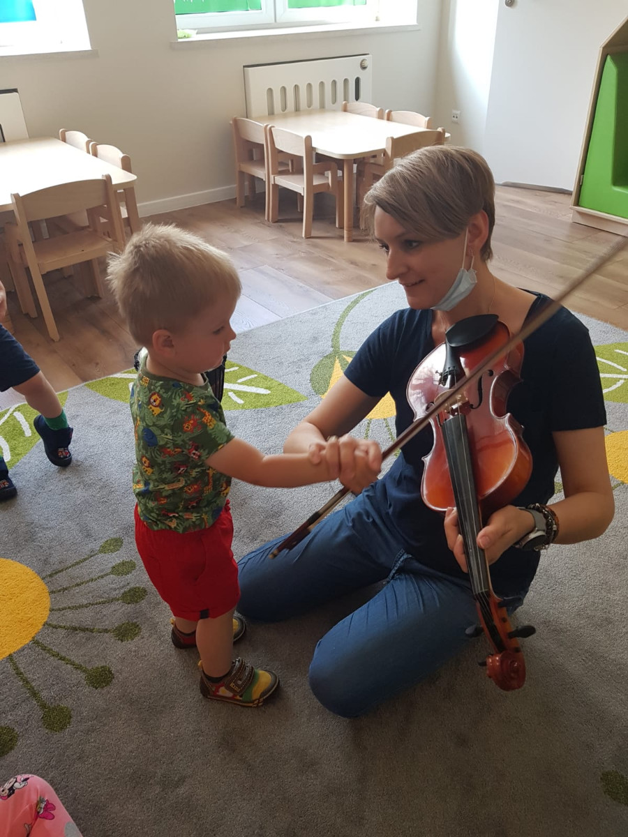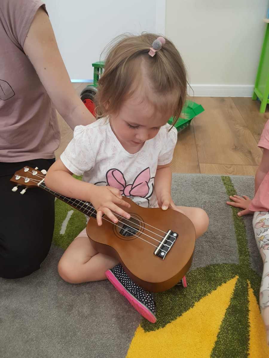 Nasi najmłodsi poznają świat muzyki. Na zajęciach mogli usyszeć i zagrać na skrzypcach, bębnie djembe i ukulele.