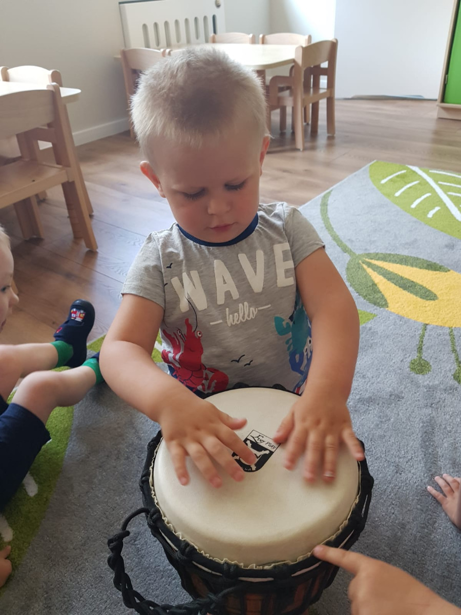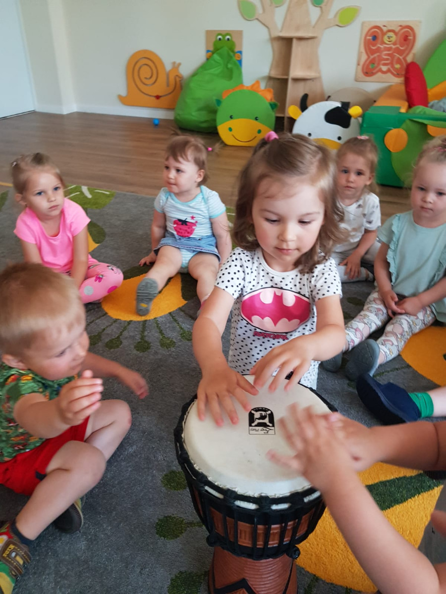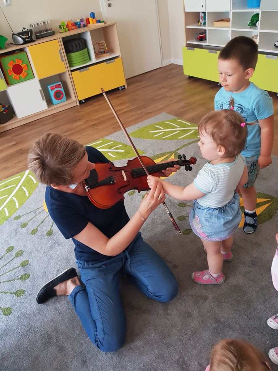 Nasi najmłodsi poznają świat muzyki. Na zajęciach mogli usyszeć i zagrać na skrzypcach, bębnie djembe i ukulele.