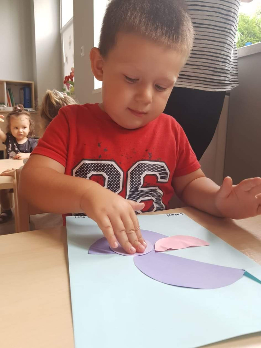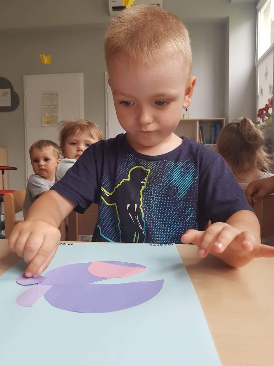 Uwielbiają zajęcia plastyczne, w ostatnim czasie samdzielni wykonywali "wieloryba z papieru"