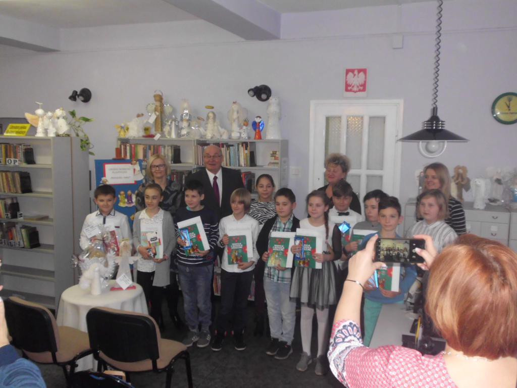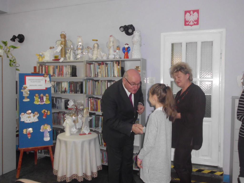 5 grudnia w bibliotece odbyło się podsumowanie Gminnego Konkursu Plastycznego pt. ,,Przylecieli anieli". Konkurs skierowany był do uczniów klas III-V szkół podstawowych z terenu gminy. Zadaniem uczestników gyło wykonanie świątecznego anioła – jednego z symboli zbliżających się świąt. Komisja konkursowa spośród 74 prac wybrała 21 najładniejszych. Dochód ze sprzedaży prac przeznaczony zostanie na cel charytatywny – pomoc w leczeniu Wiktora Foksa, mieszkańca naszej gminy.