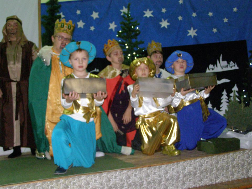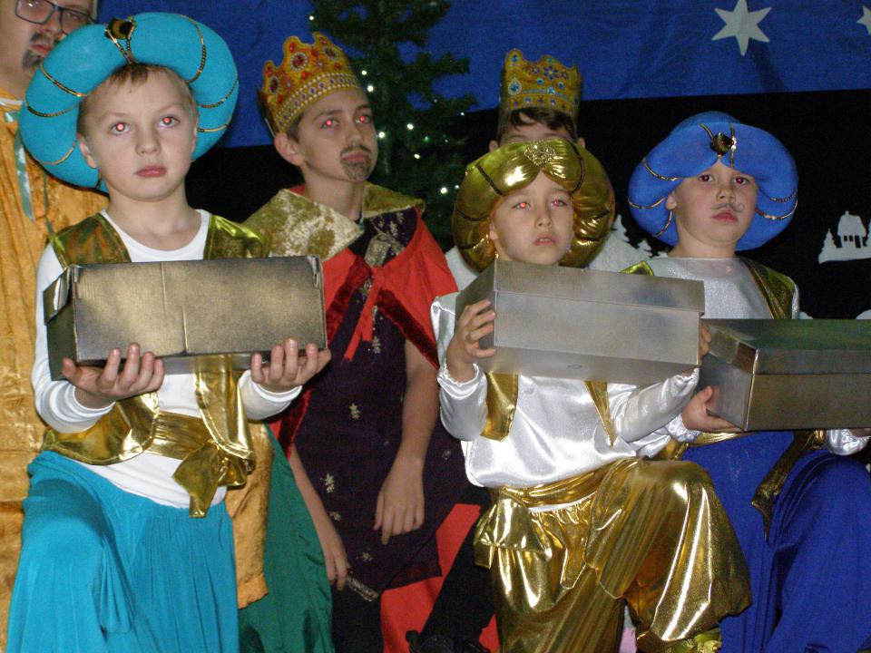W niedzielne popołudnie 8 grudnia 2019 roku w naszej szkole odbyło się jasełkowe przedstawienie. Spektakl o narodzeniu Bożego Dzieciątka zgromadził licznie przybyłą publiczność, która w ciszy i skupieniu obejrzała wystawioną przez małych aktorów sztukę. Barwne widowisko łączące w sobie teksty mówione oraz kolędy i pastorałki w tym roku wzbogacone zostało prezentacją multimedialną, która stanowiła tło prezentowanych scen i nadawała bieg akcji. Wcielający się w role członków Bożej Rodziny, aniołów, pasterzy, Heroda, diabłów uczniowie po raz kolejny zachwycili swoją grą i zostali nagrodzeni gromkimi brawami.