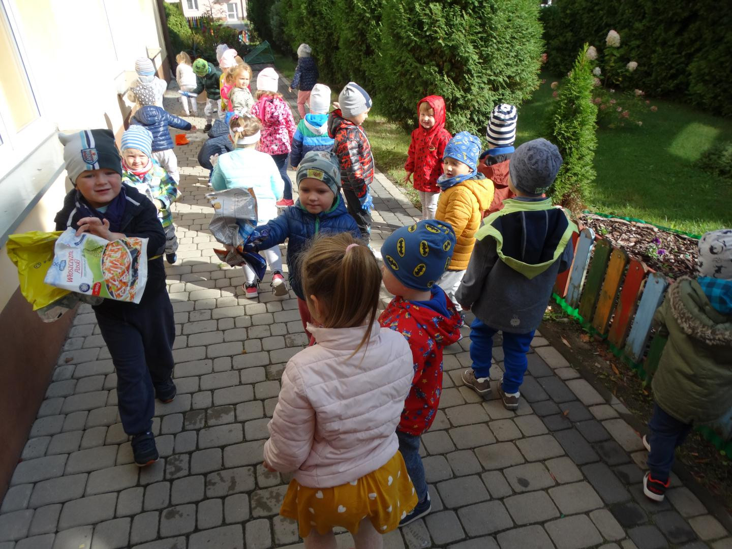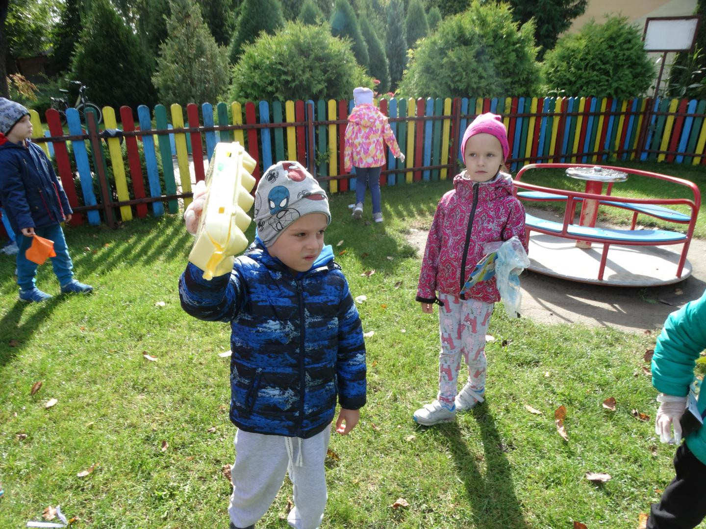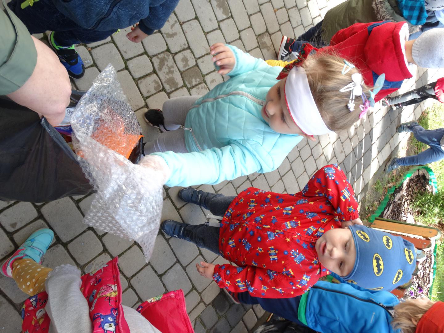 Tradycyjnie, jak co roku, we wrześniu nasze przedszkole włącza się do ogólnopolskiej akcji „Sprzątanie Świata”, by od najmłodszych lat uczyć dzieci zasad dbania o środowisko naturalne. Tegoroczna edycja odbyła się pod hasłem „Nie śmiecimy! – Sprzątamy! – Zmieniamy!”. Po krótkiej pogadance na temat konieczności ochrony środowiska, dzieci zaopatrzone w rękawiczki i worki, z wiedzą czego szukamy i co zbieramy, rozpoczęły porządkowanie terenu wokół przedszkola oraz placu zabaw. Maluchy z ogromnym zaangażowaniem przystąpiły do pracy i dzielnie zbierały papierki, folie, kartony i butelki po napojach, odpowiednio je segregując. Efektem działań było uzbieranie dwunastu worków śmieci. Przedszkolaki, widząc jak dużo jest śmieci wokół i jak trudno to posprzątać, nauczyły się, że czystość otoczenia, w którym przebywamy, zależy tylko od nas. Dla dzieci była to praktyczna nauka kształtowania postaw przyjaznych środowisku oraz racjonalnej gospodarki odpadami, poprzez selektywną zbiórkę i recykling. Mamy nadzieję, że zdobyte w ten sposób doświadczenia zaowocują w przyszłości dobrymi ekologicznymi nawykami.