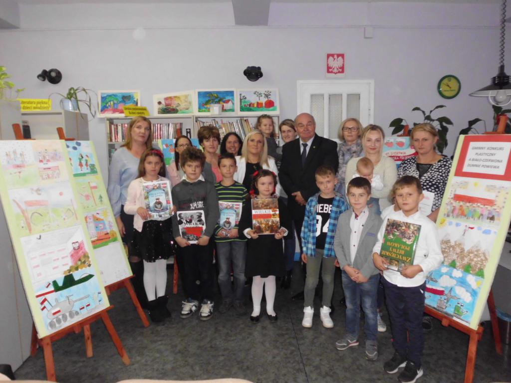 23 października w bibliotece gminnej odbyło się podsumowanie Gminnego Konkursu Plastycznego p.t. "A BIAŁO – CZERWONA DUMNIE POWIEWA". Konkurs ten rozpoczął działania biblioteki związane z obchodami setnej rocznicy odzyskania przez Polskę niepodległości i skierowany był do uczniów klas I – III szkół podstawowych z terenu Gminy Maków. Zadaniem uczestników konkursu było wykonanie płaskiej pracy plastycznej przedstawiającej takie momenty w życiu społeczności, w których prezentacja naszych barw narodowych ma szczególny wyraz: narodowe święta i ich celebrowanie w szkole i środowisku, wydarzenia sportowe i inne.