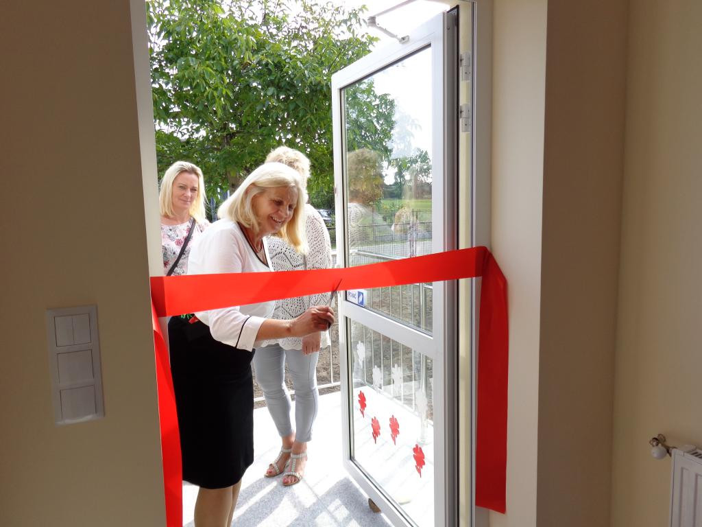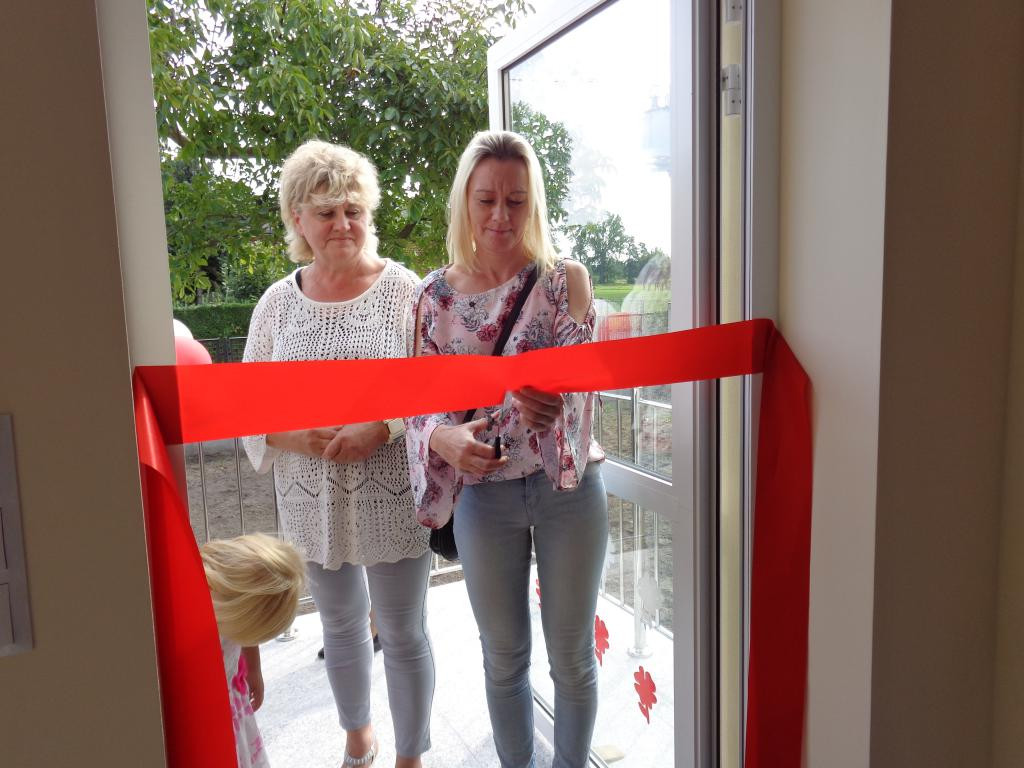 Dyrektor Szkoły Ewa Krawiec oraz dostojni goście poprzez przecięcie wstęgi dokonali oficjalnego otwarcia oddziału przedszkolnego w nowym, pięknym obiekcie.