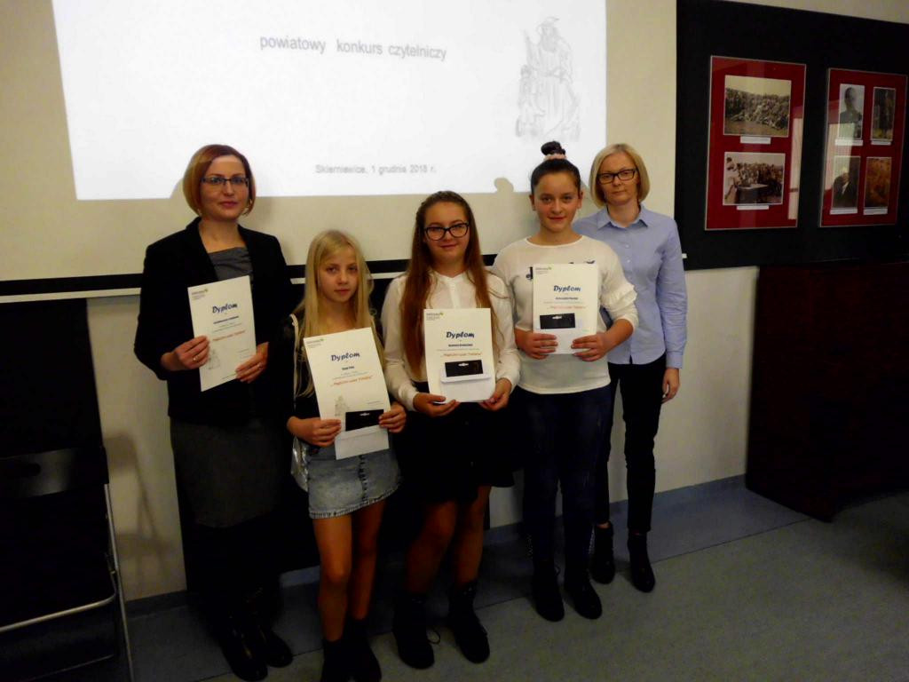 W dniu 1 grudnia 2018 roku w Miejskiej Bibliotece Publicznej w Skierniewicach odbył się powiatowy konkurs czytelniczy pt. ,,Magiczny świat Tolkiena”. Naszą gminę reprezentowały uczennice VI klasy Szkoły Podstawowej w Słomkowie, w składzie: Kinga Foks, Aleksandra Piechut i Antonina Krokocka. Dziewczęta przed przystąpieniem do konkursu musiały zmierzyć się z lekturą pt. ,,Hobbit, czyli tam i z powrotem” oraz zapoznać się z życiorysem Tolkiena. Konkurs składał się z dwóch etapów: pisemnego i ustnego. Do drugiego etapu przeszła Kinga Foks, która odpowiedziała bezbłędnie na wszystkie pytania i zajęła pierwsze miejsce. Uczestniczki konkursu powróciły z dyplomami i cennymi nagrodami. GRATULUJEMY