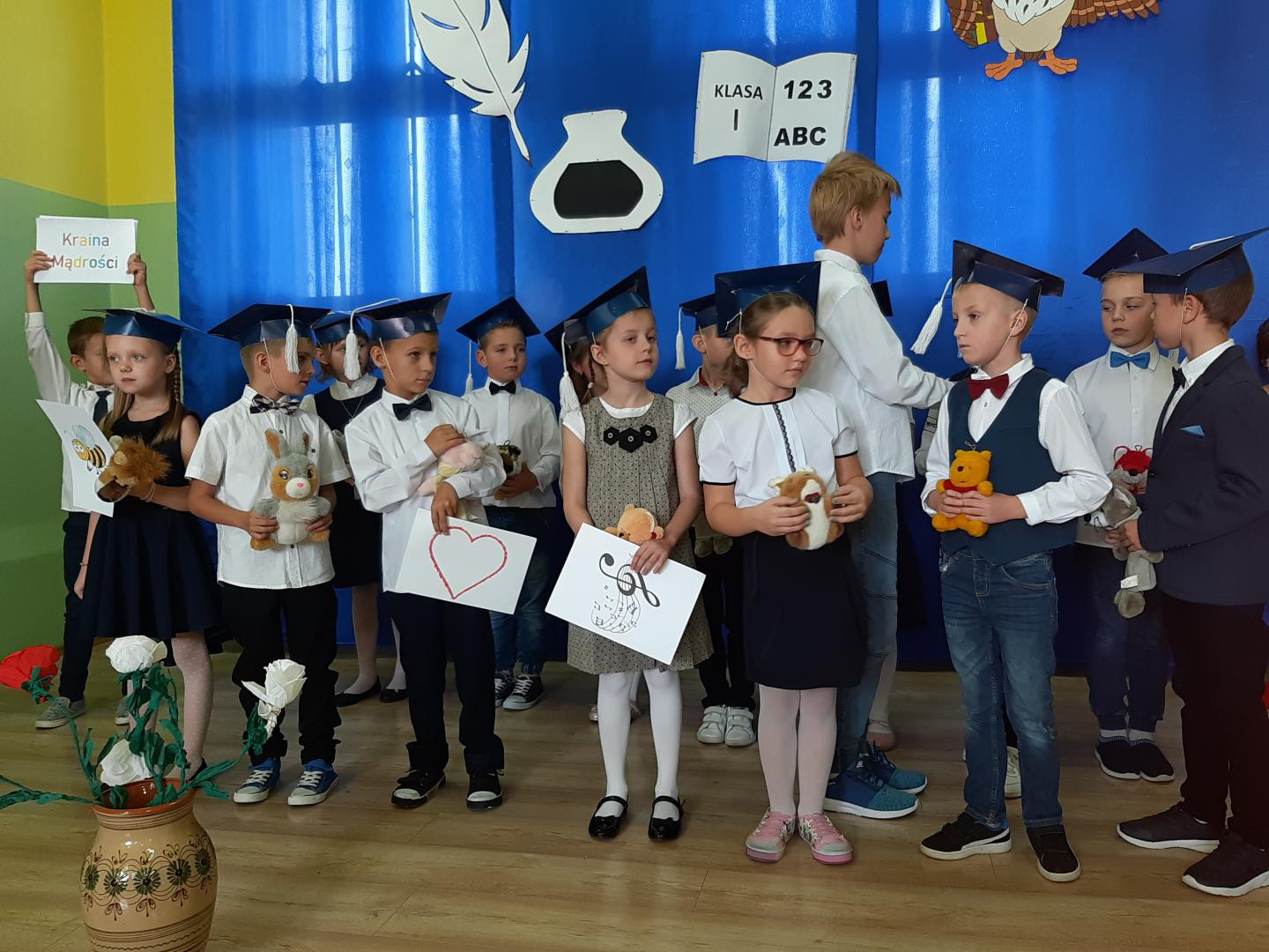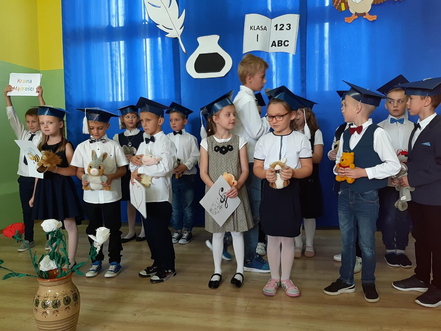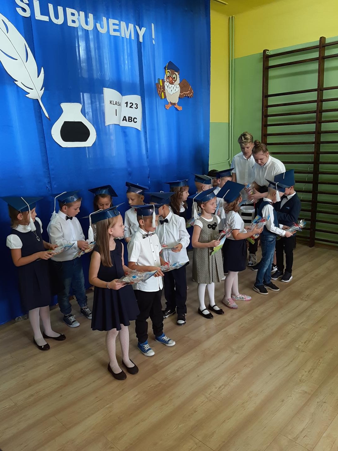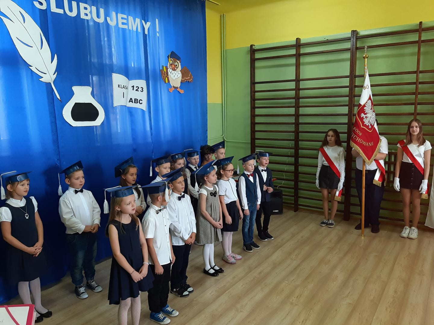 Zanim najmłodsi uczniowie zostali przyjęci do grona społeczności szkolnej zaprezentowali swoje umiejętności w przedstawieniu związanym tematycznie z uroczystością ślubowania. Następnie pierwszoklasiści złożyli uroczyste ślubowanie,po którym pan wójt Jerzy Stankiewicz dokonał pasowania ich na uczniów- magicznym ołówkiem. Po uroczystym ślubowaniu i pasowaniu uczniowie fakt ten przypieczętowali odciskiem palca w Kronice Szkoły. Jako pełnoprawni już uczniowie Szkoły Podstawowej im. Księdza Stefana Kardynała Wyszyńskiego w Woli Makowskiej otrzymali od pani dyrektor Elżbiety Kamińskiej legitymacje szkolne a od wychowawczyni Anny Głas pamiątkowe dyplomy pasowania. Pierwszoklasiści otrzymali również drobne upominki od starszych kolegów i koleżanek oraz zaproszonych gości.