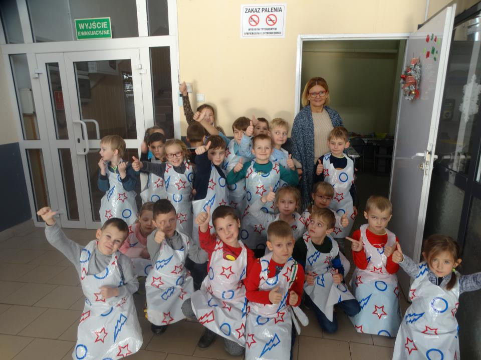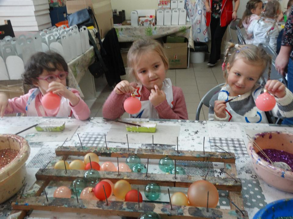 Najstarsze grupy dzieci z Gminnego Przedszkola z Makowa wraz z wychowawczyniami wybrały się na wycieczkę autokarową do Piotrkowa Trybunalskiego, gdzie zwiedzali maleńką fabrykę produkującą ozdoby świąteczne „Dekor – Szkło”. Tam pani przewodnik oprowadzając nas po zakładzie wprowadzała przedszkolaki w tajniki produkcji bajecznie kolorowych bombek. Zwiedzanie zaczęliśmy od dmuchalni szkła, gdzie powstaję te niezwykłe cudeńka. Dmuchanie bombek przypomina troszkę robienie baniek mydlanych - tylko temperatura pracy jest nieco wyższa - ok. 600 stopni Celsjusza. Kolejnym pomieszczeniem, do którego zostaliśmy zaproszeni to miejsce, gdzie bombki dostają zastrzyki i są srebrzone od środka. Mają tam też swoistą szkołę przetrwania - kilkuminutowe wytrząsanie, aby sreberko równo się rozłożyło...potem już tylko kąpiel i do suszenia. Piękne srebrne kule bardzo się wszystkim podobały i mogłyby takie pozostać, ale to jeszcze nie koniec ich podróży. Teraz wędrują do farbiarni, gdzie pani lakieruje je w bajeczne, tęczowe odcienie. Złote, czerwone, żółte, pomarańczowe, zielone, matowe i błyszczące jakie dusza zapragnie. Ostatnim etapem naszego zwiedzania była pracownia zdobienia bombek. Panie malarki z niezwykłą precyzją wyczarowywały przeróżne wzory przy użyciu cieniutkich pędzelków z włosia wiewiórek lub bobrów. Wszystko ozdobione barwnym brokatem, koralikami, cekinami i innymi niezwykłymi ozdobami tworzącymi ze szklanych kulek prawdziwe dzieła sztuki. Nareszcie upragniona frajda. Wszystkie dzieci dostały cztery bombeczki i własnoręcznie je ozdobiły. Ale była zabawa. Troszkę grubszymi niż Panie pędzlami, dzieci nanosiły na szkło specjalny klej tworząc swoje wymarzone wzorki, po czym obsypywały rożnymi kolorami brokatu. Wyszły przepięknie, każda z nich otrzymała również śliczny napis z imieniem jej właściciela.