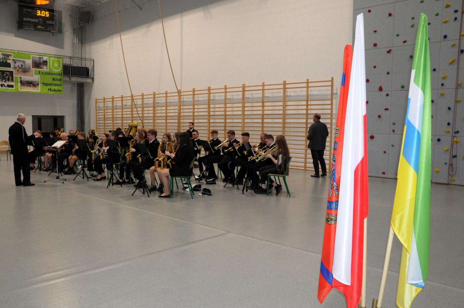 Po Mszy Św. wszyscy przy marszowych dźwiękach w wykonaniu orkiestry przemaszerowali do hali sportowej Makowskiego Centrum Kultury, gdzie odbyła się dalsza część uroczystości. Na początku z krótkim koncertem wystąpiła Orkiestra Dęta, a następnie odbyło się ogłoszenie wyników gminnego konkursu plastycznego poświęconego tematyce strażackiej pn. „Współcześni rycerze Świętego Floriana”, którego organizatorem był urząd gminy. Autorzy wyróżnionych w konkursie prac otrzymali dyplomy i upominki, które wręczył Wójt Jerzy Stankiewicz. Na zakończenie wszyscy obecni na uroczystości mogli skosztować grochówki i ciast przygotowanych przez panie z KGW w Woli Makowskiej oraz żurku przygotowanego przez Panią Irenę Mikulską z Makowa.