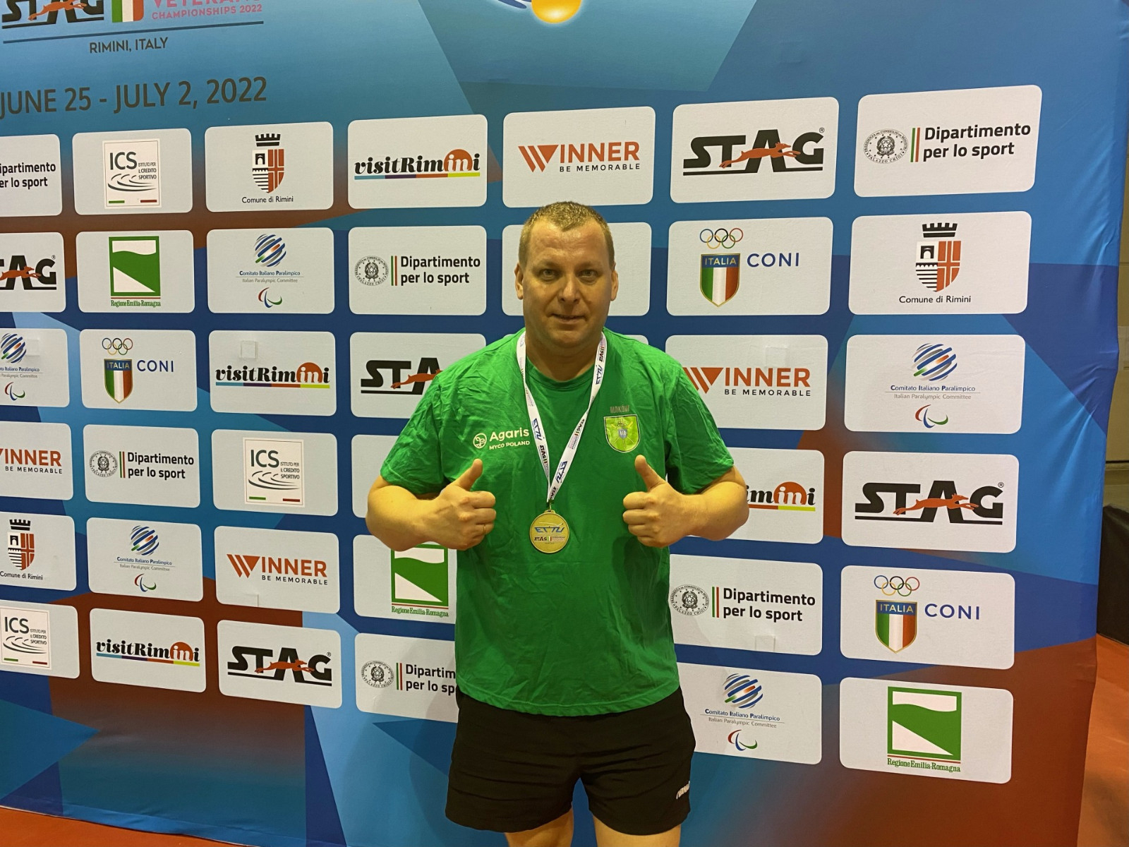 Włoskie Rimini było gospodarzem Mistrzostw Europy Weteranów w tenisie stołowym. Mistrzostwa odbywały się w dniach 26.06.2022r.-02.07.2022r. W zawodach Polskę reprezentował między innymi Paweł Stopiński - skierniewiczanin, który od 2016 roku występuje w klubie UKS Maków. W Rimini Paweł odniósł olbrzymi sukces, zdobywając brązowy medal w grze podwójnej, wspólnie z Wojciechem Tebecio ze Skarszew. Para, będąc jedna ze stu, w tej kategorii wiekowej, rozegrała łącznie 7 spotkań, przegrywając jedynie ostatnie, półfinałowe z niemieckim duetem 9:11 w piątym secie. W turnieju indywidualnym w Pawła kategorii wystąpiło 187 zawodników. Po awansie z grupy do turnieju głównego Paweł pokonał kolejno dwóch rywali z Niemiec i Hiszpanii, by ostatecznie ulec Włochowi (późniejszemu brązowemu medaliście) 1:3 i tym samym uplasował się w przedziale miejsc 17-32.