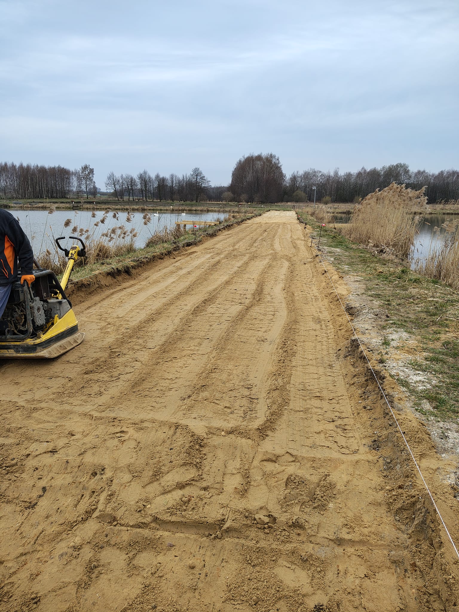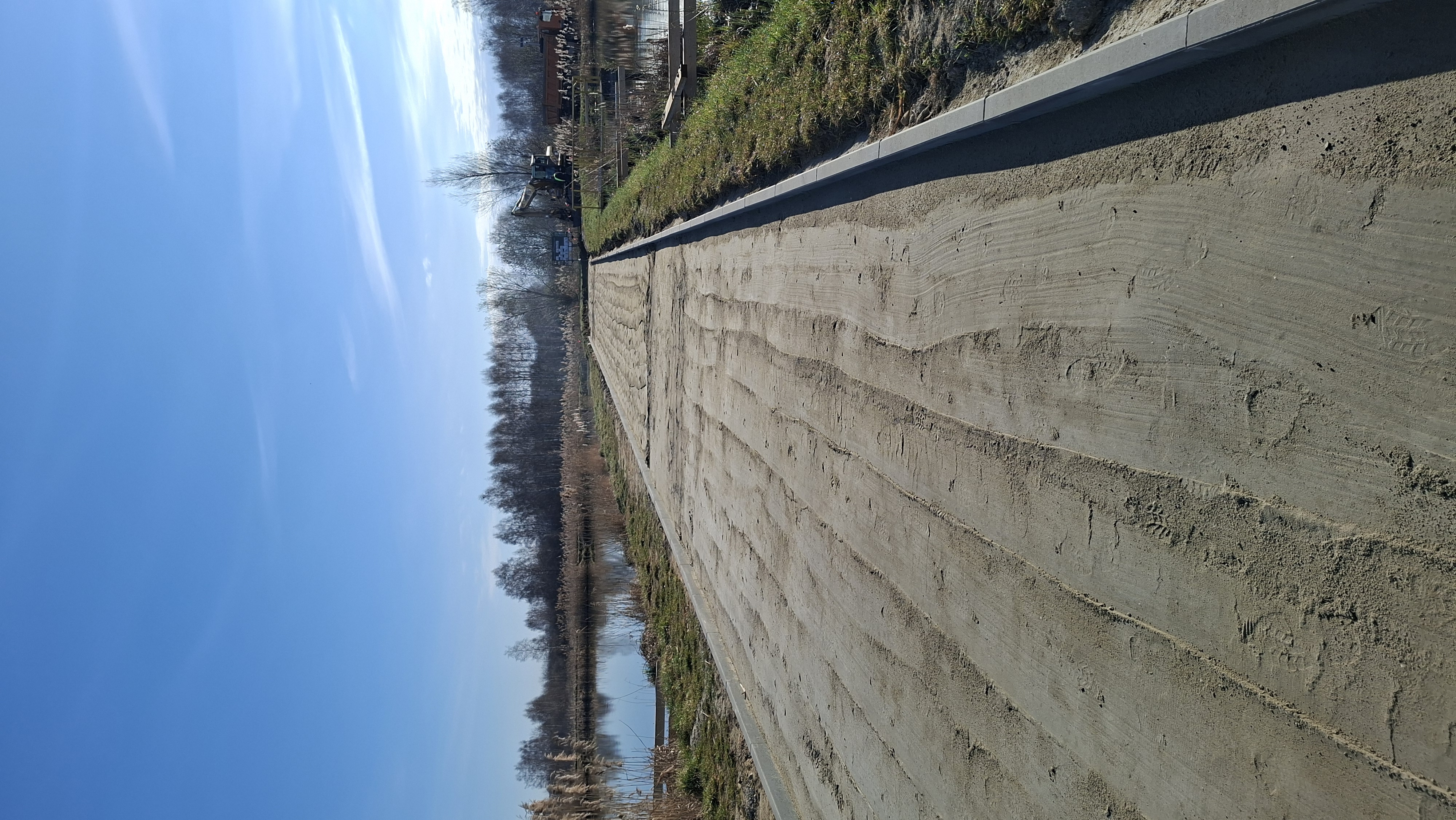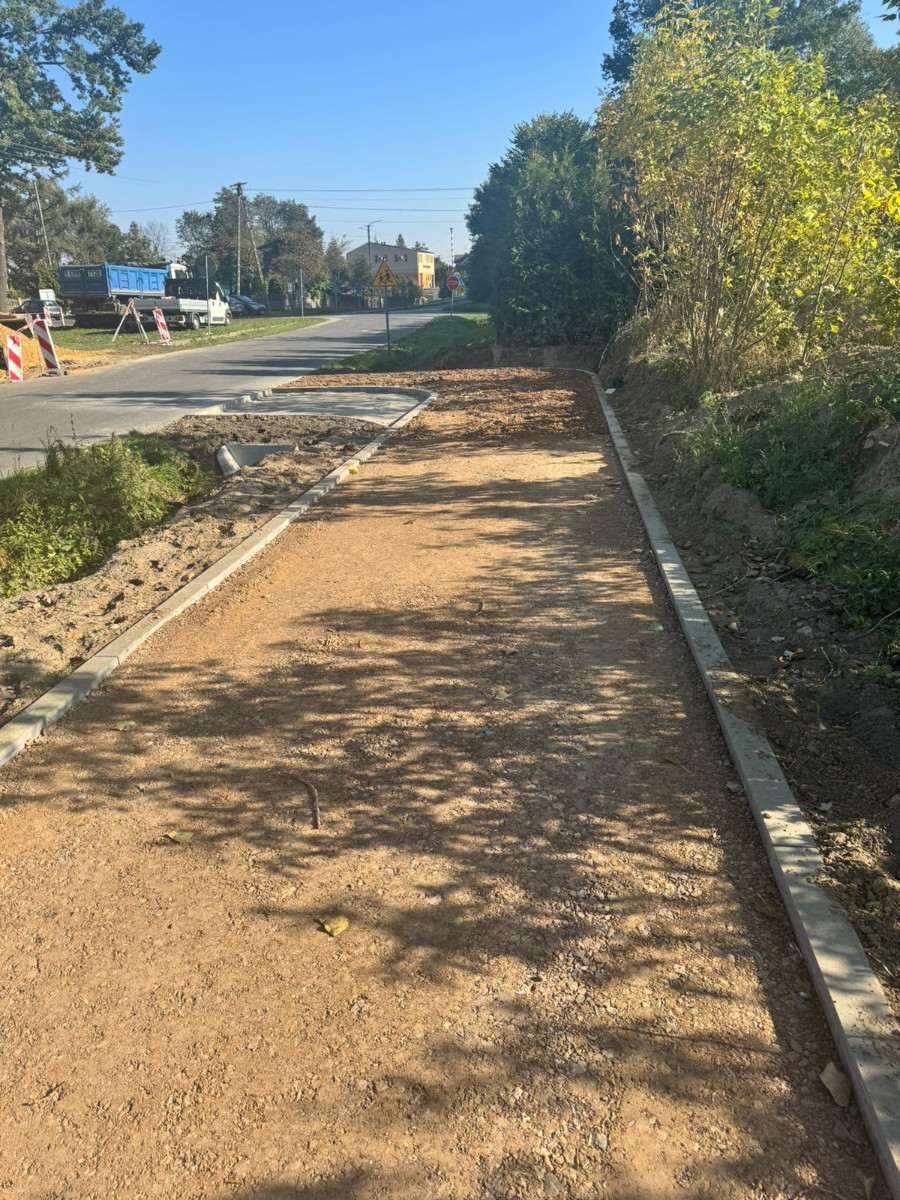 Wykorytowano ziemię, ustawiono krawężniki, przygotowano teren pod położenie nawierzchni ścieżki.